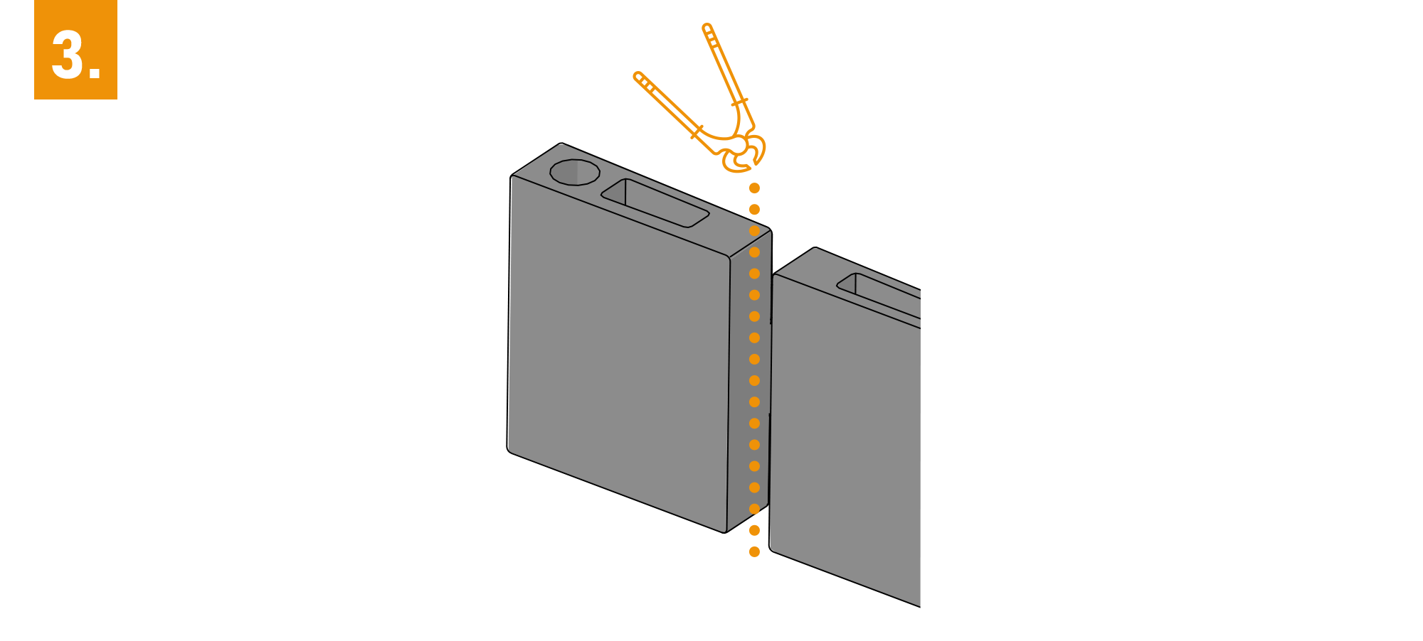 Etwaigen Überstand des KONIK Schiebekeils können Sie an den dafür vorgesehenen Stellen abtrennen.